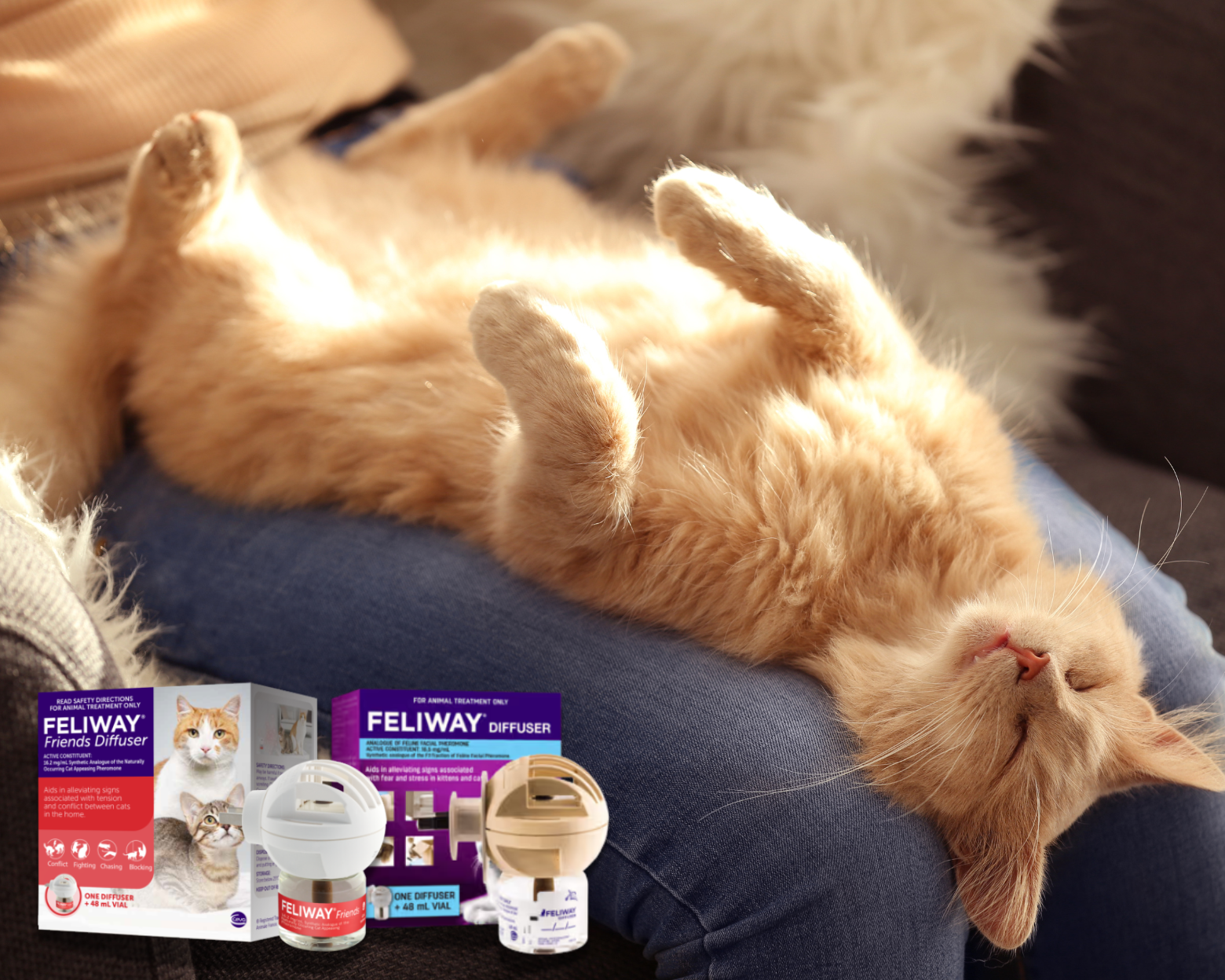 Feliway Classic is ideal for cats showing stress through behaviours such as urine spraying, scratching or hiding, while Feliway Friends will help cats live harmoniously together.